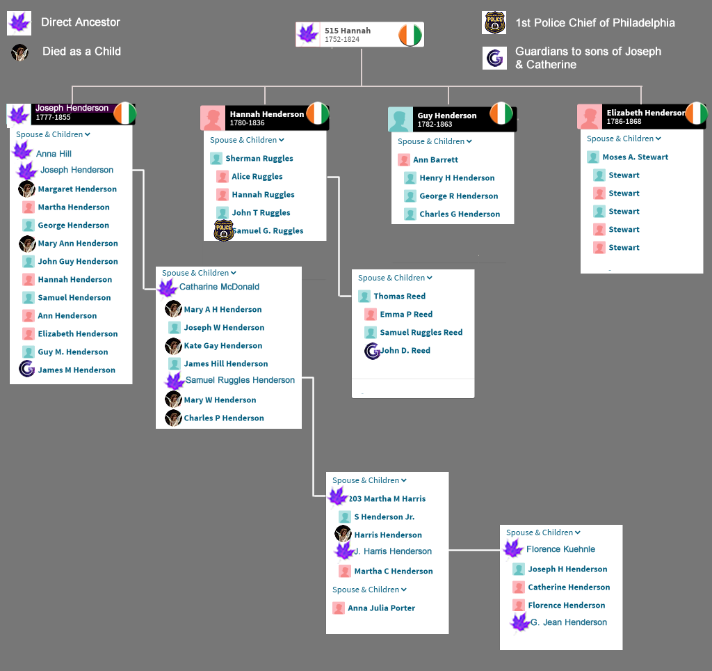 b. May 1777, Tyrone Co. Ireland | b. 25 Jan 1778, Philadelphia | b. Abt. 1801, Philadelphia | b. Abt. 1808. Philadelphia | |||